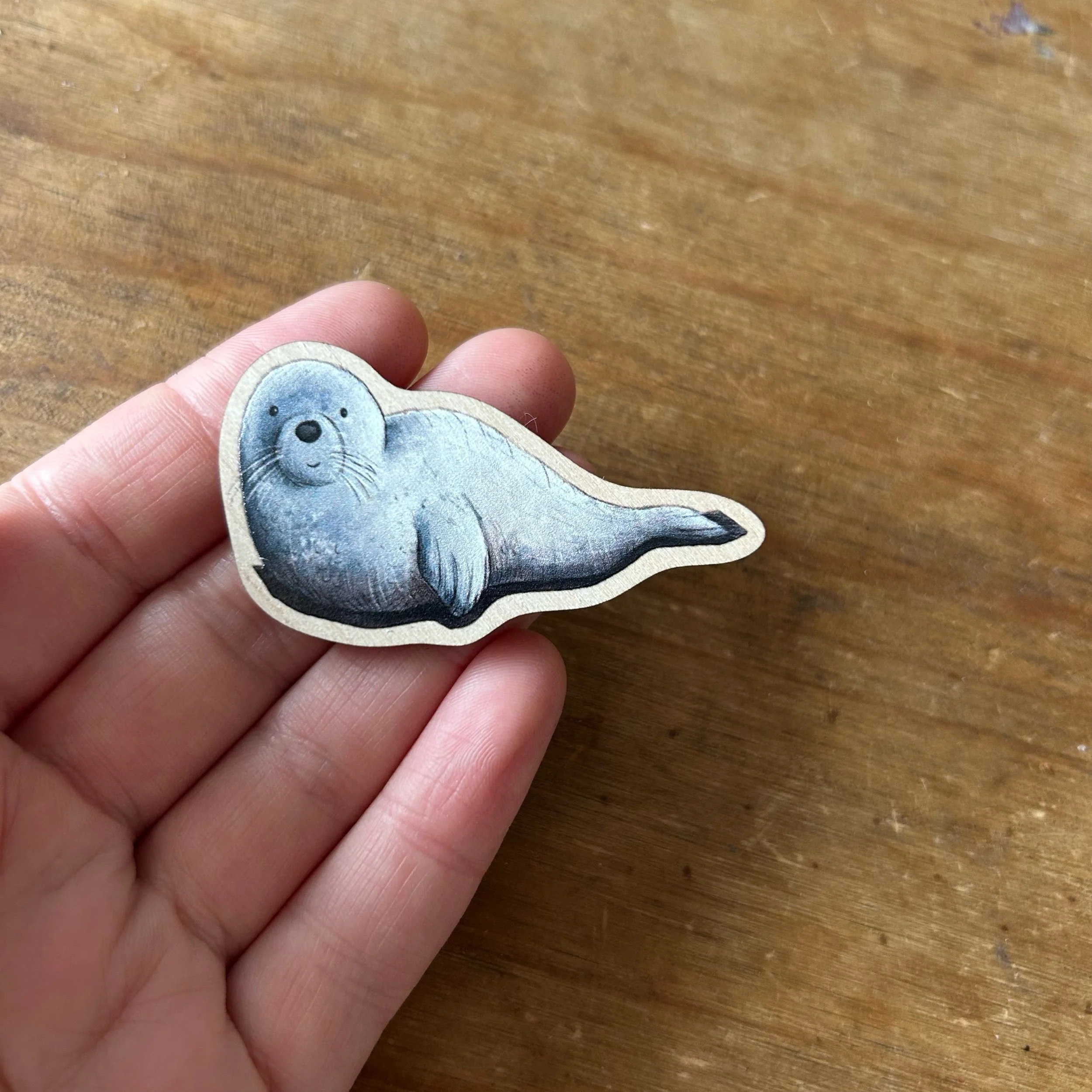 Thin disc magnet on the back, it’s made using responsibly sourced 4mm thick Maple vaneer MDF, which smells amazing and really makes the printed colours pop! :D